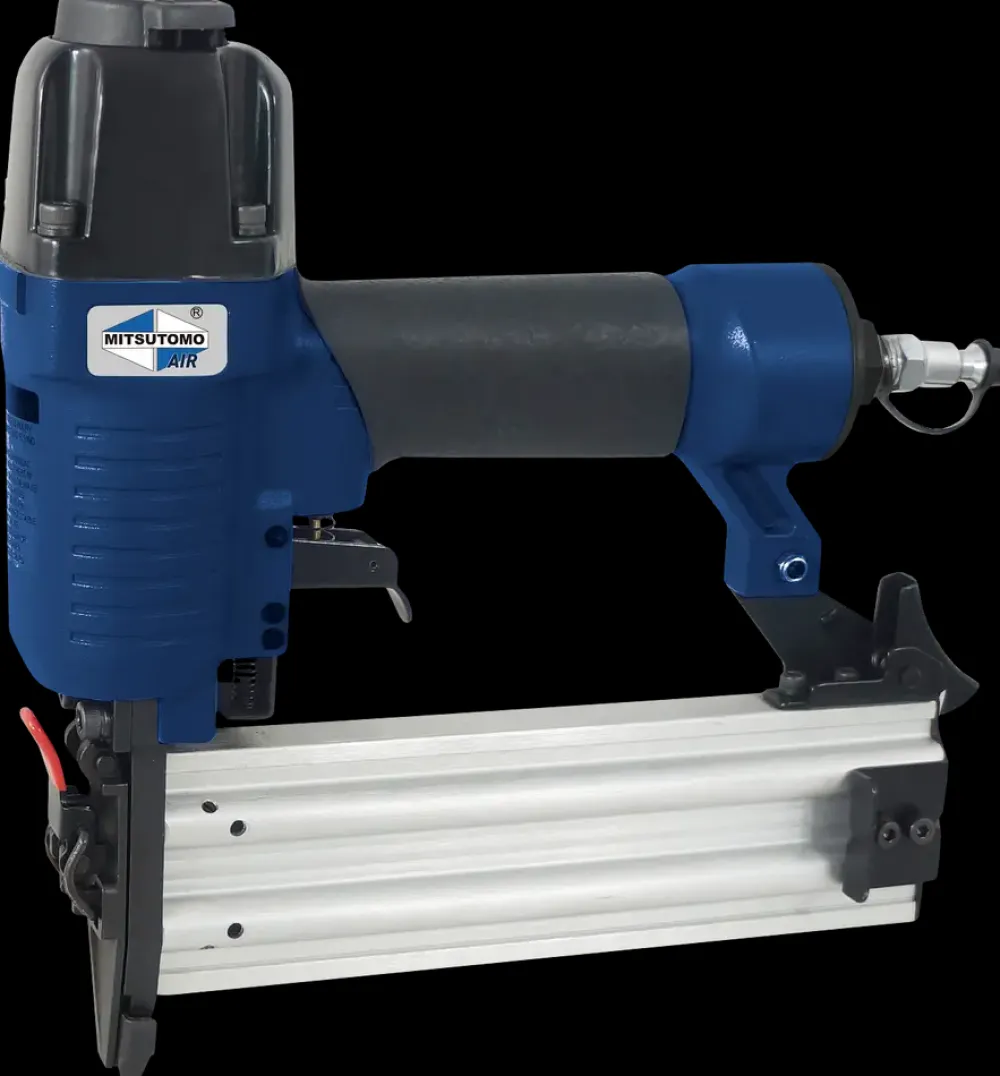 Dykkerpistol fra Mitsutomo Air med softgrip-håndtag og 360° justerbar luftudblæsning.Sømkapacitet: 100 stk.Sømlængde: 15-50 mm.Anbefalet arbejdstryk: 4,8-7,5 bar.