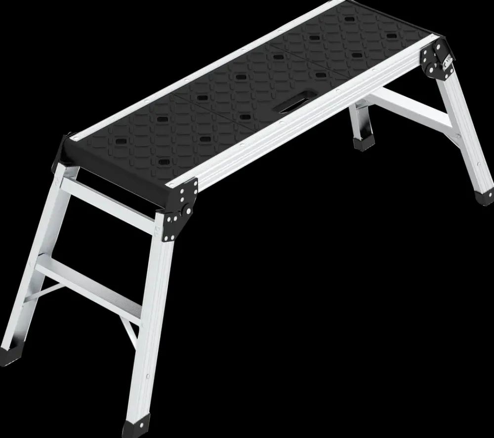 Arbejdsplatform i aluminium.Foldbart design, som gør den nem at transportere.Skridsikkert beklædning i sort. Højde: 50 cmPlatforms mål: 30×90 cm Platformshøjde: 50 cm.