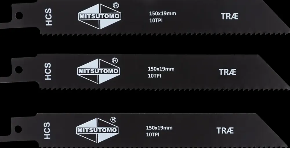 Bajonetsavklinger fra Mitsutomo, som kan bruges med de fleste bajonetsave på både ledning og batteri.Klingerne er velegnede til savning i naturtræ, blødt og hårdt træ samt plast.