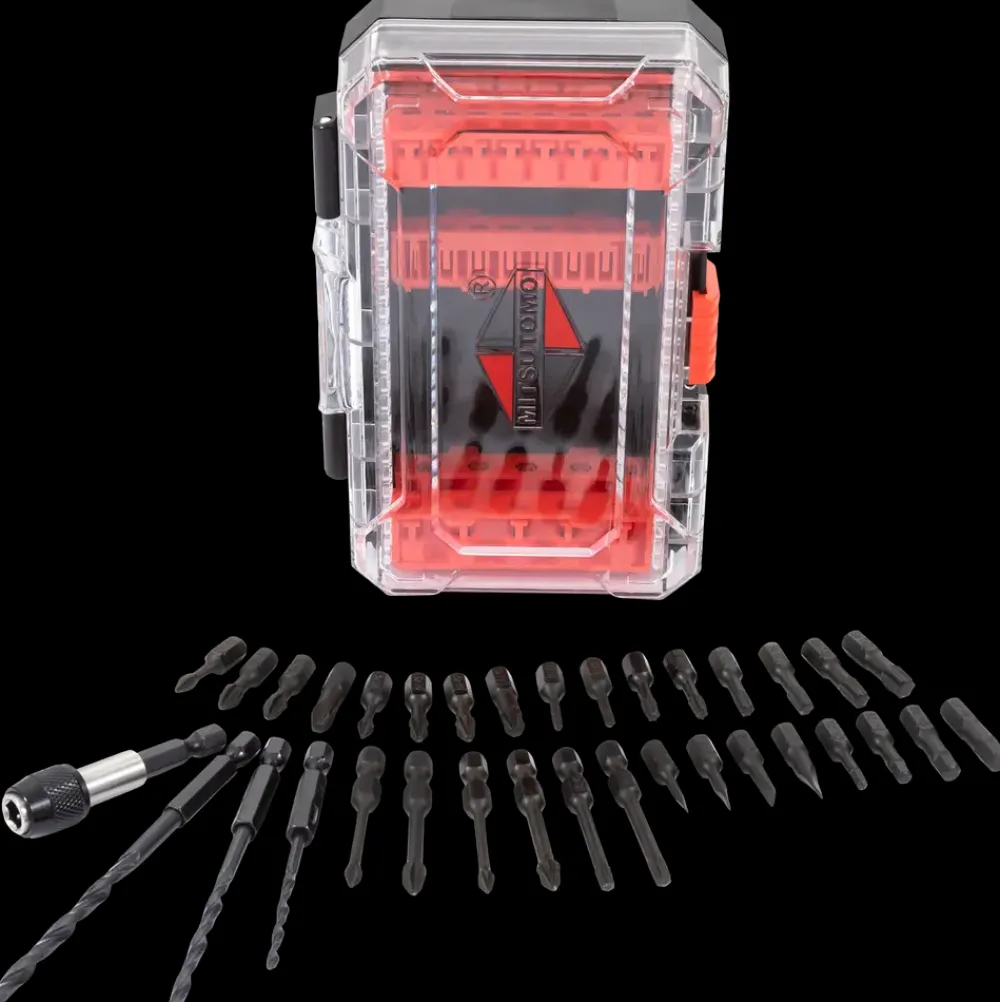 Sættet indeholder bits og HSS bor, som er fremstillet i stærk S2 stål.Med dette sæt vil du have de nødvendige værktøjer til at udføre en bred vifte af opgaver, inde for skrueopgaver og borearbejde.Bitssæt med 34 dele fra Mitsutomo.Sættet består af:24 stk. 25 mm bitsPH: 1, 2, 2, 3 PZ:1, 2, 2, 3SL: 3, 4, 5, 6TX: 10, 15, 20×2, 25, 27, 30, 40H: 3, 4, 5, 66 stk. 50 mm bitsPH: 1, 2 PZ: 1, 2TX: 20, 253 stk. bits HSS bor Ø3, 4, 5 mm1 stk. Bitsholder med quick release.