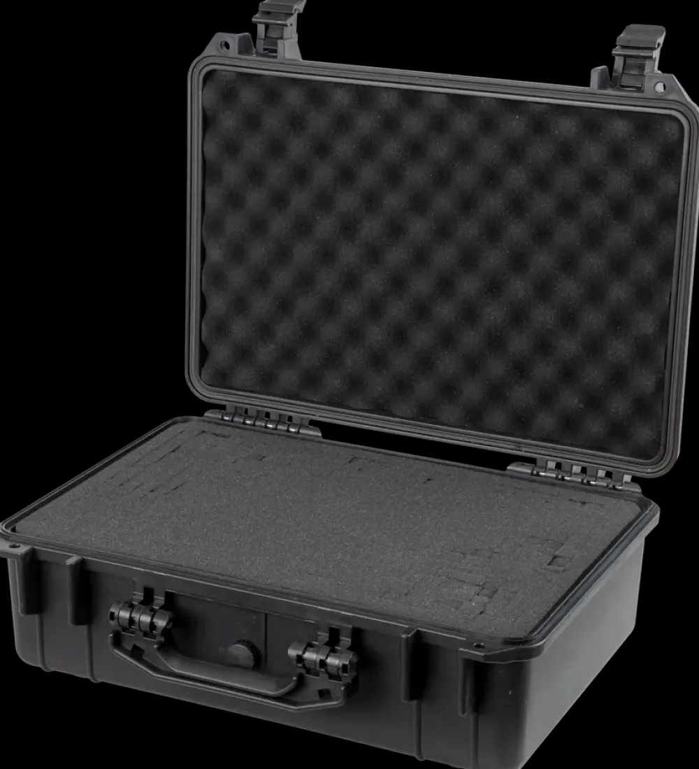 Vandtæt, støvtæt og stødsikker kuffert fra Mitsutomo.Kufferten leveres med skumindsats, der kan formes efter det ønskede indhold samt trykudligningsventil.Den vandtætte kuffert kan låses med 2 hængelåse (ekskl.) og er velegnet til mange formål, f.eks. til opbevaring og transport af fotoudstyr, værktøj og elektronik.Indvendige mål: H. 15,5 x B. 28,8 x D. 43 cm.