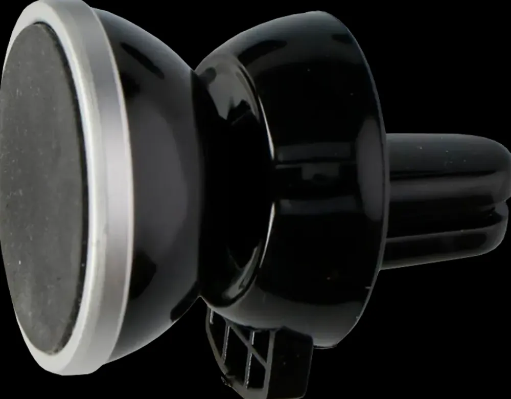 Magnetisk mobilholder til montering i bilens ventilationsgitter. Holder mobilen sikkert på plads under kørslen – også ved ujævne vejforhold. Hurtig fastgørelse og afmontering med “klik”-funktion. Diameter: 28 mm.Fremstillet i sort ABS-plast med sølvkant. Kompakt design, der passer diskret ind i de fleste bilinteriører. Kræver ingen permanent montering – clipses nemt fast. Passer til mange mobiltelefoner og kan bruges i flere biler.