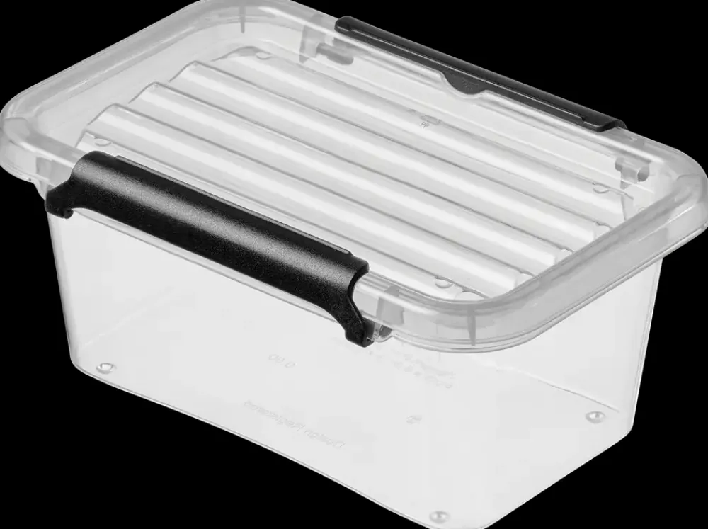 Moxom Opbevaringsboks Simplestor Wave på 0,5 liter er en plast kasse til organisering af mindre genstande i hjemmet. Den kan anvendes i køkken, skuffer, skabe, badeværelse eller bryggers, hvor der er behov for struktur og overblik. Den transparente udførelse gør det muligt at se indholdet uden at åbne boksen.Boksen er en del af plastkasser med låg og er udstyret med lukkeclips, som holder låget sikkert lukket. Den stabelbare konstruktion gør det muligt at placere flere plastkasser oven på hinanden, hvilket giver en mere effektiv udnyttelse af pladsen. Det modulære format gør det nemt at kombinere flere bokse fra samme serie.Plast kassen er fremstillet i polypropylen (PP plast), som er en let og formstabil plasttype, der er modstandsdygtig over for fugt og almindelig daglig brug. Materialet egner sig til opbevaring af både tørvarer og små husholdningsartikler.Mål: H. 6,5 x B. 9,5 x L. 15 cmKapacitet: 0,5 literFarve: TransparentMateriale: Polypropylen (PP plast)