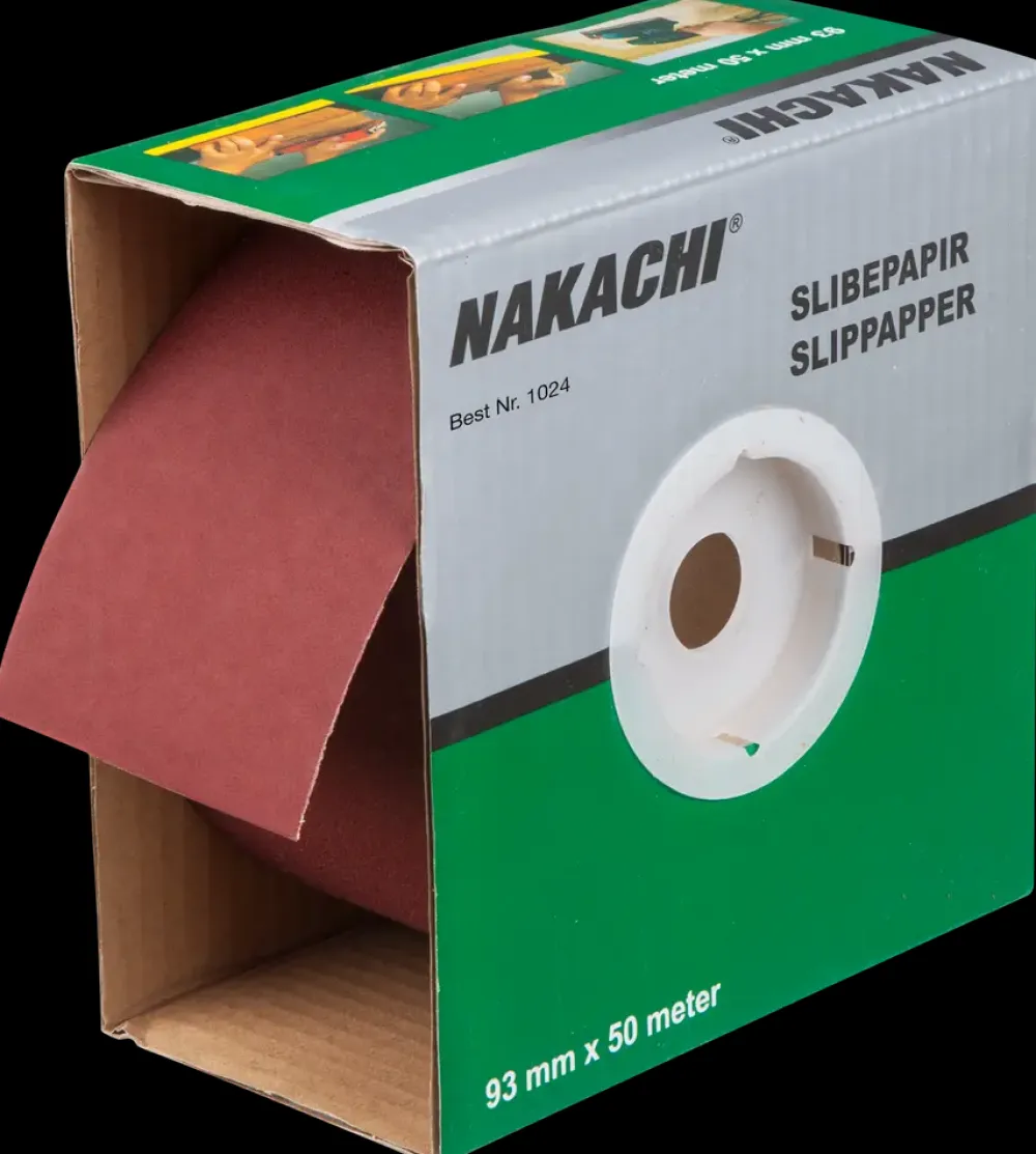 Slibepapir fra Nakachi, ideelt for slibning af træ, metal, plast og glasfiber.