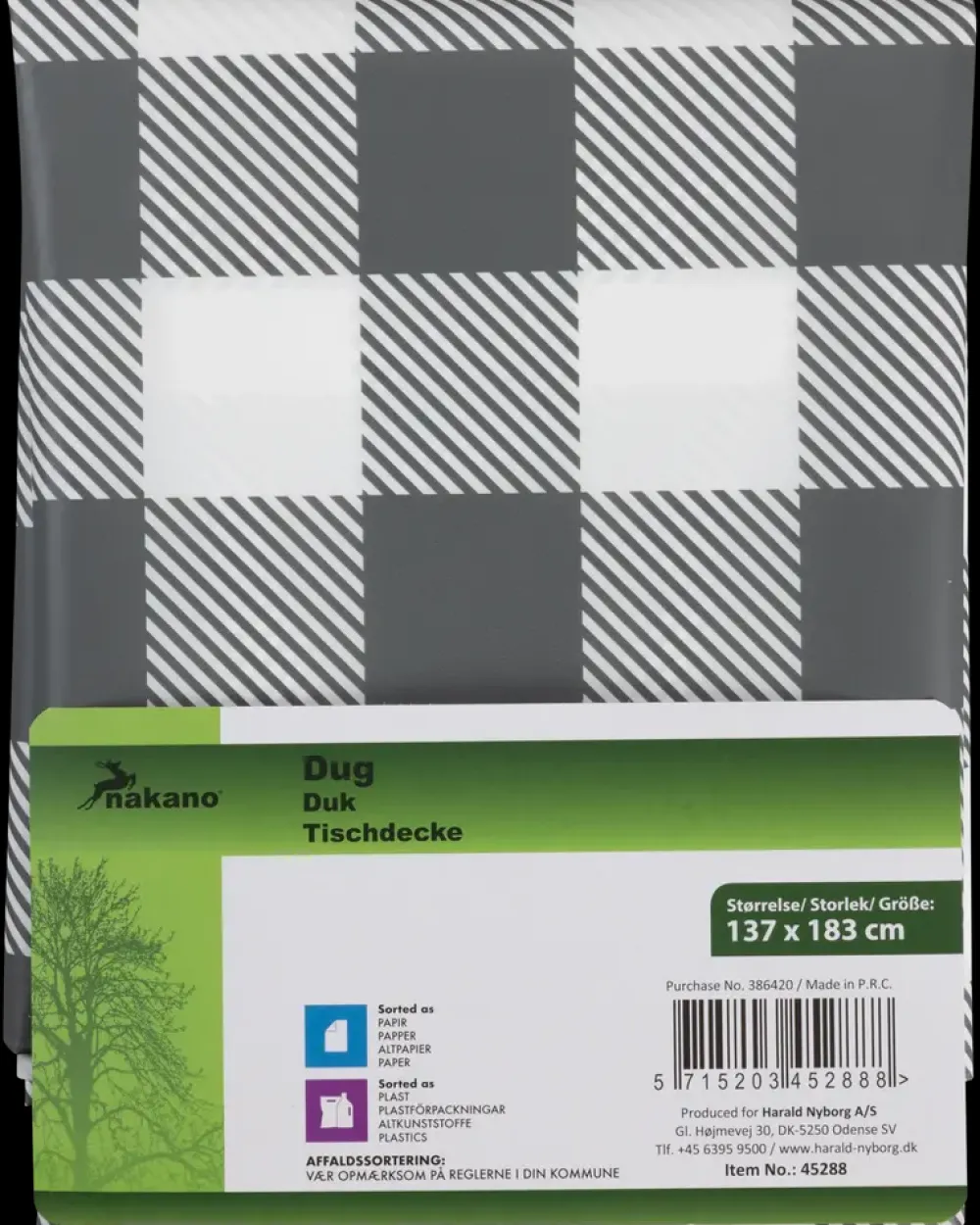 Dug fremstillet i holdbart PEVA-materiale, der kombinerer styrke med lav vægt. Overfladen er vandafvisende og nem at rengøre med en simpel aftørring, hvilket gør den ideel til både indendørs og udendørs brug.Det stilfulde ternede mønster i grå og hvide nuancer giver et neutralt og moderne udtryk, der passer til de fleste borde og omgivelser. Dugen måler 137 x 183 cm og giver god dækning til almindelige spiseborde.Velegnet til camping, picnic eller daglige måltider, hvor den beskytter bordet mod spild og snavs. Bemærk, at varme genstande ikke bør placeres direkte på dugen, da det kan beskadige materialet.Materiale: PEVAFarve: GråMål: 137 x 183 cm