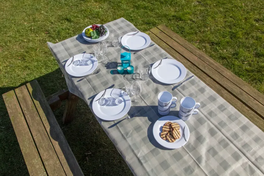 Voksdug fra Nakano – ideel til f.eks. campingbrug. Klassisk ternet mønster i diskrete farver. Nem at tørre over.