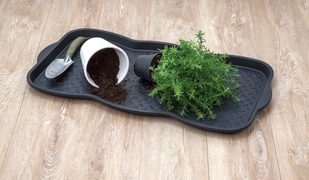 Plastbakke med flere anvendelsesmuligheder både inden- og udendørs:Skobakke til vådt og beskidt fodtøj.Plantebakke til f.eks. vanding af planter.100% vandtæt.Nem at rengøre.Mål: L 75 x B 38 x H 3,5 cm.