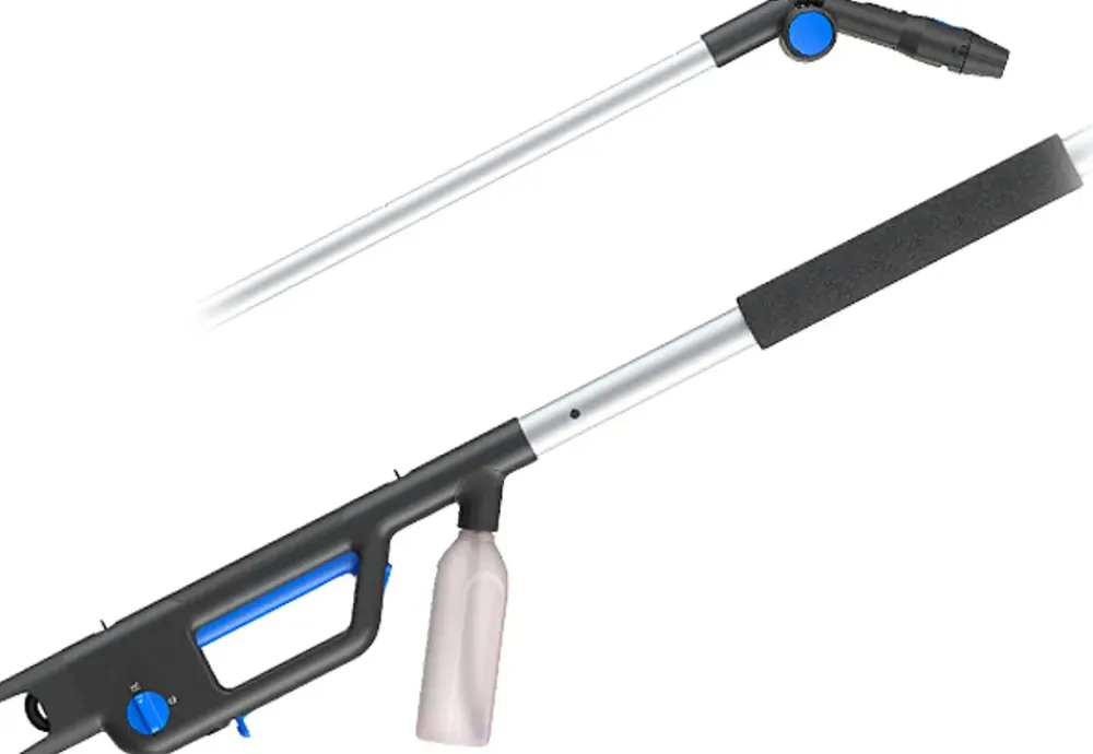 Nilfisk tagrensesæt er en alsidig løsning til effektiv rengøring af tage, solceller og facader. Med sin justerbare teleskoplanse, der kan strække sig fra 1,8 m til 3,9 m, giver det en rækkevidde på op til 14 meter, perfekt til højdearbejde.Sættet inkluderer en skumdyse, justerbart dysehoved (0°-135°) og en sæbebeholder til præcis dosering af rengøringsmidler. Det medfølgende supportbælte og skumgreb sikrer komfort og stabilitet under brug. Med højtryks- og lavtryksfunktion kan sættet bruges til alt fra kraftig rengøring til skånsom vask. En ideel løsning til at efterlade overflader rene og fri for belægninger.