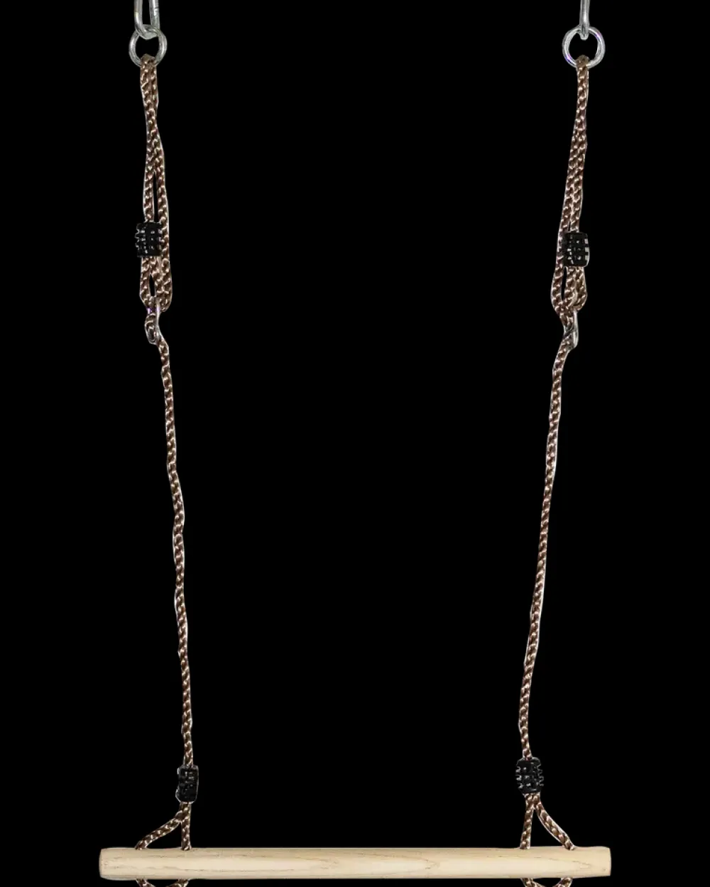 Robust trapez i træ der muliggør, at små akrobater kan svinge og lave cirkus artist numre.En fantastisk måde at træne kropskontrol og styrke på.Her kan der laves de fineste akrobatik øvelser!Trapezen leveres med stabile, længdejusterbare reb og metalringe til ophæng.Leveres ekskl. gyngekroge. Passer til gyngestativ varenr. 8912. Hertil skal der anvendes 2 stk. gyngebeslag varenr. 7914.Gyngen må anvendes af børn fra 3-10 år.