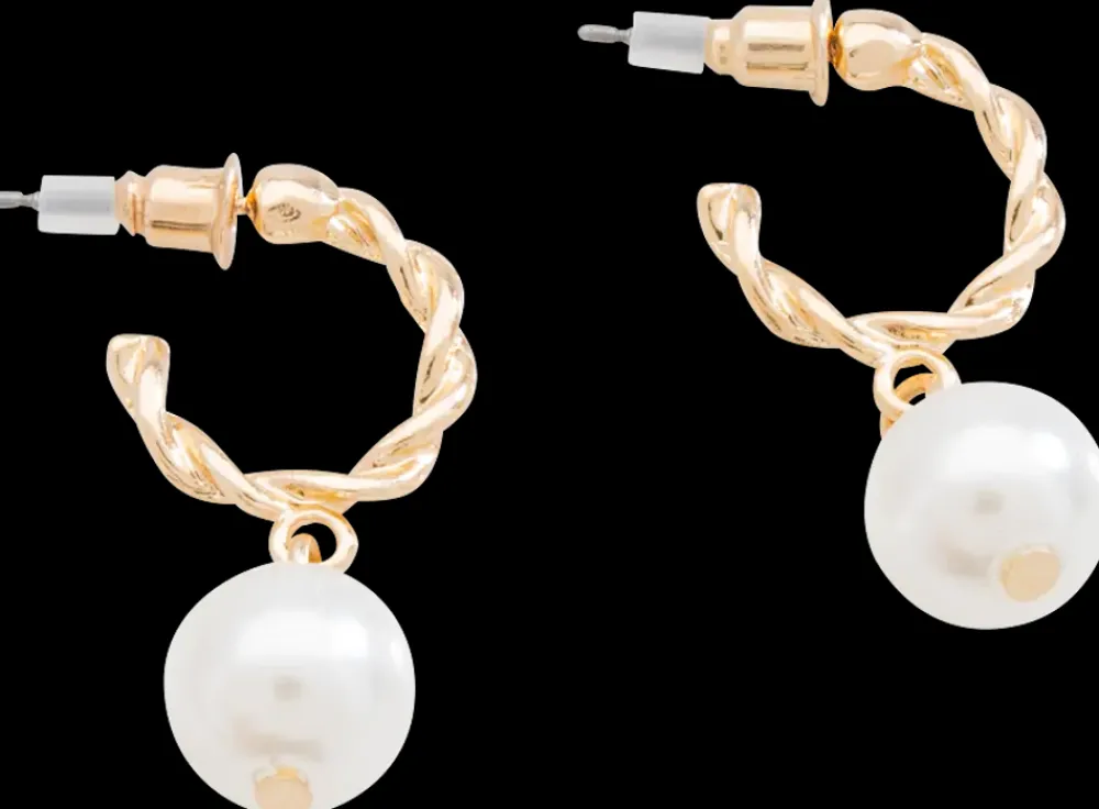 Øreringe snoet hoop med perle – guld| Smykker & Hårpynt