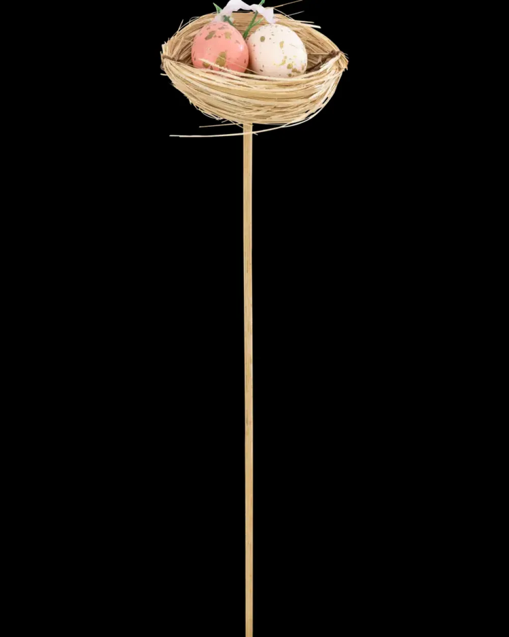 Skab en hyggelig påskestemning med denne søde rede på pind, dekoreret med små æg og blomsterdetaljer. Perfekt til at pynte en buket eller som en charmerende detalje i en potteplante. Pinden er 26 cm høj og findes i tre forskellige varianter.Variant kan ikke vælges ved køb i webshoppen.