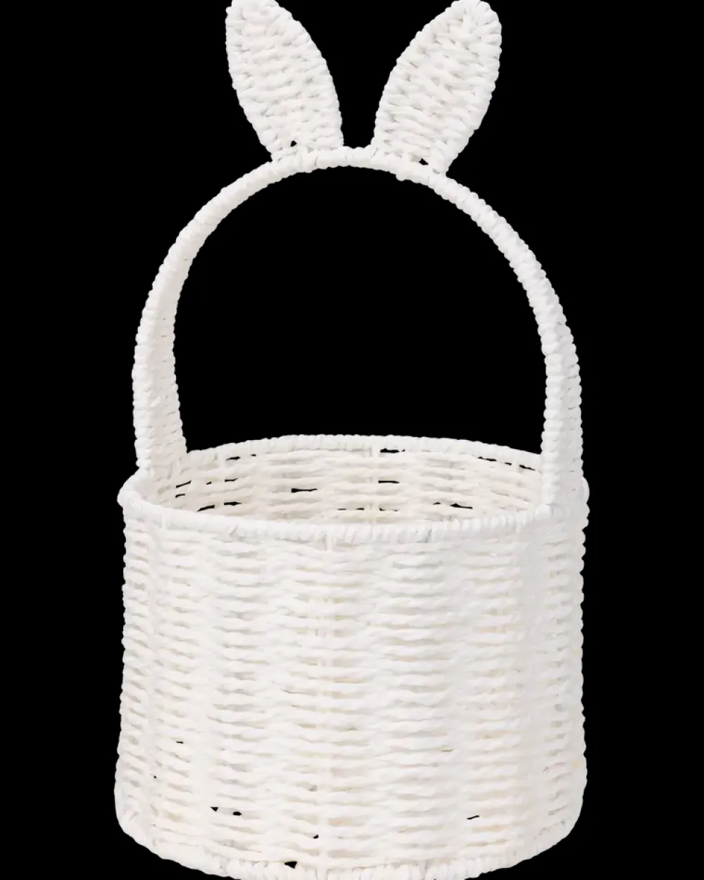 Påskekurv formet som en kanin til æggejagt og påskedekoration. Kurven har en rund form med hank og to opretstående ører, som giver et tydeligt påskeudtryk. Den kan anvendes til indsamling af påskeæg eller som dekorativ opbevaring i hjemmet i påskeperioden.Kurven er let at bære med hanken og egner sig til lette genstande. Den åbne top gør det nemt at lægge og tage indhold op. Formen står stabilt ved almindelig brug og passer til både borddekoration og gulvplacering.Diameter: 18 cmHøjde med ører: 32,5 cmHøjde til hank: 26 cmFarve: Hvid