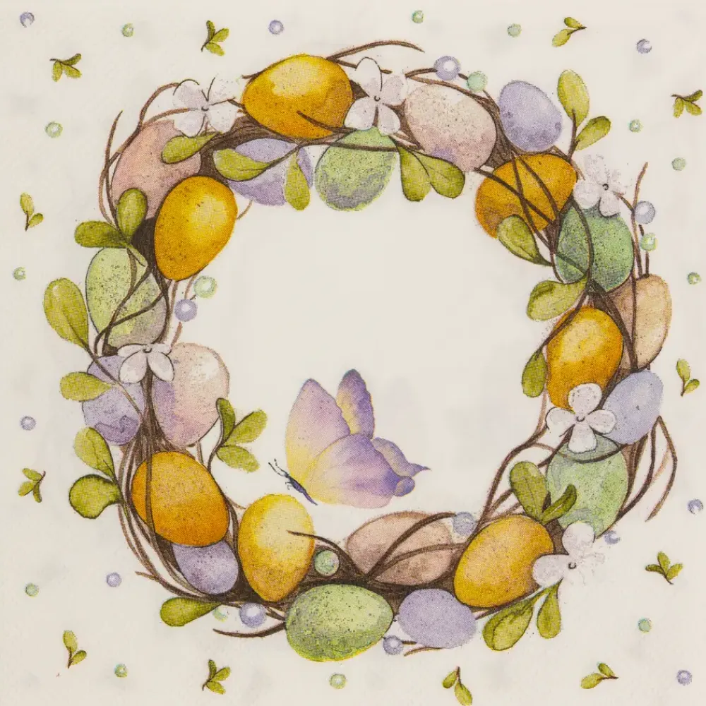 Påskeservietter i papir til borddækning ved påskefrokost og andre sæsonbetonede anledninger. Servietterne er velegnede til servering af mad og drikke og kan bruges både til hverdag og gæster.Pakken indeholder 20 stk. servietter i assorterede påskedesigns. Servietterne er 3-lags og måler 33 x 33 cm, når de er foldet ud, hvilket svarer til standard middagsstørrelse.Variant kan ikke vælges ved køb i webshoppen.