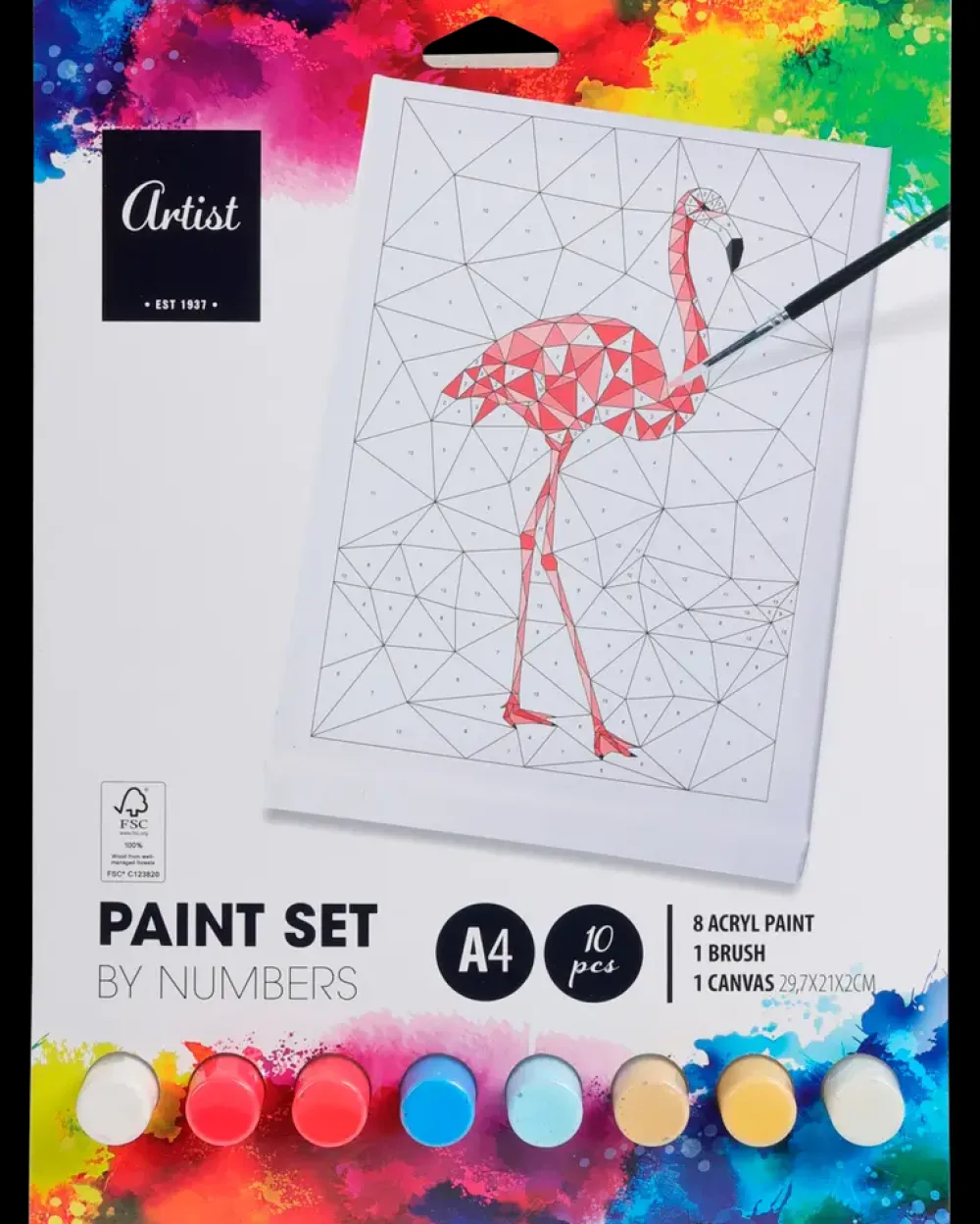 Malebog med maling og pensel. Farvelæg motiverne ved hjælp af numrene på papiret og skab et flot billede. Mål: 23 x 33 x 2,5 cm Der kan ikke vælges variant i webshoppen.