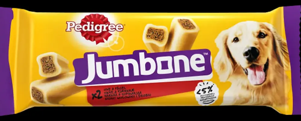 Hunde elsker at tygge – Pedigree® Jumbone® Medium med smag af okse er et velsmagende og sjovt tyggeben, der holder længe. Jumbone® kombinerer en fast ydre tyggeflade med en indbydende blød kerne – den er velsmagende og giver lang tids tyggeglæde. Tyggestængerne indeholder omega-3, vitaminer og mineraler og er samtidig fri for kunstige farve-, smags- og aromastoffer, så du kan forkæle din hund med god samvittighed!Indhold: 2 stk.Til hunde fra 10 kg.Tyggestænger med okse som holder længere.Under 2% fedt.Ingen kunstige farve-, smags- og aromastoffer.