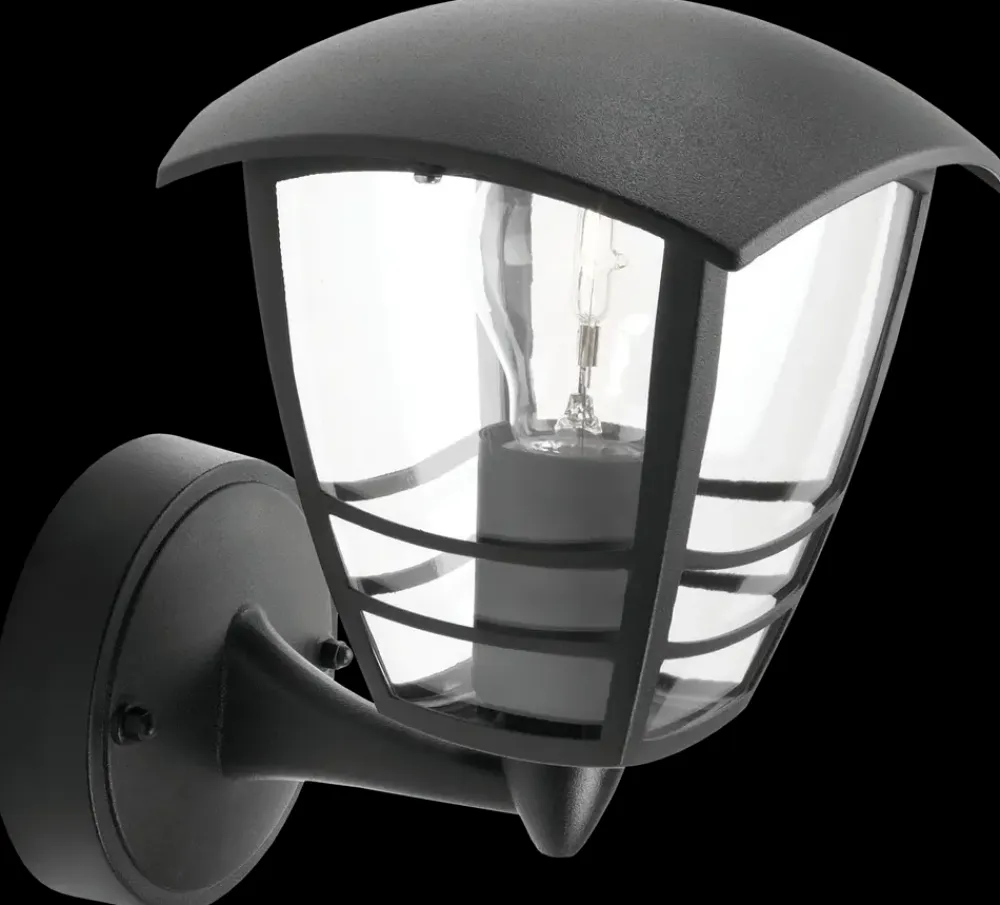 PHILIPS Væglampe Creek up E27 – sort| Udendørs Væglamper