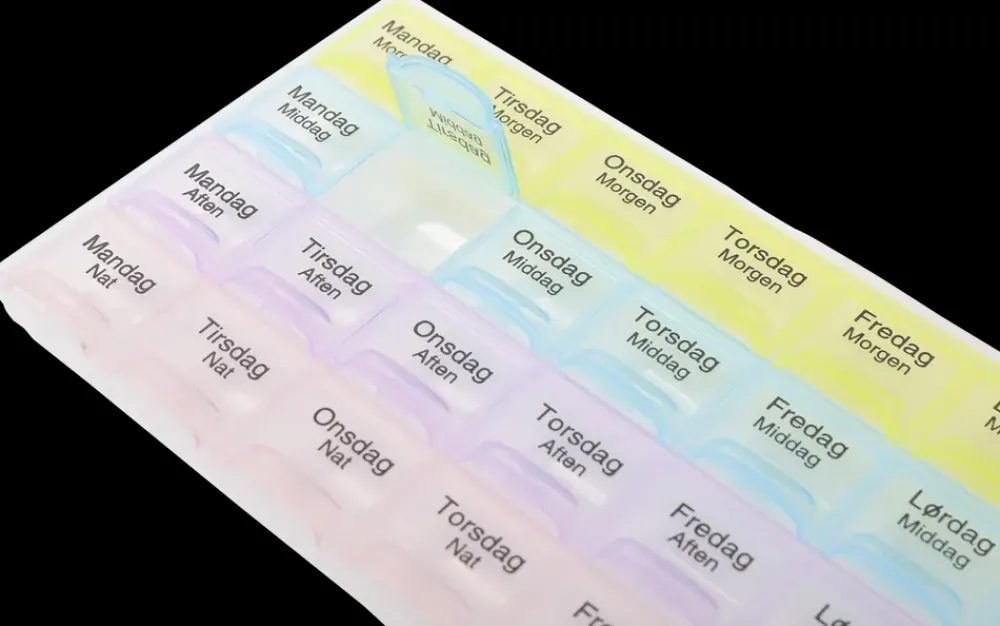 Denne pilleæske gør det nemt og overskueligt at holde styr på medicin og kosttilskud i løbet af ugen. Den indeholder i alt 28 rum – ét for hver af ugens 7 dage og 4 daglige tidspunkter: morgen, middag, aften og nat. Hvert rum er tydeligt mærket med ugedag og tidspunkt, hvilket reducerer risikoen for fejl og sikrer korrekt indtagelse.Farvekodede låg hjælper med hurtigt at identificere dagens tidspunkter og giver et godt visuelt overblik. Æsken er praktisk at bruge både hjemme og på farten og egner sig til både faste medicinrutiner og midlertidige kure.Antal rum: 28Tidsopdeling: Morgen, middag, aften og natFarver: 4 farvekoder fordelt på døgnets tidspunkter