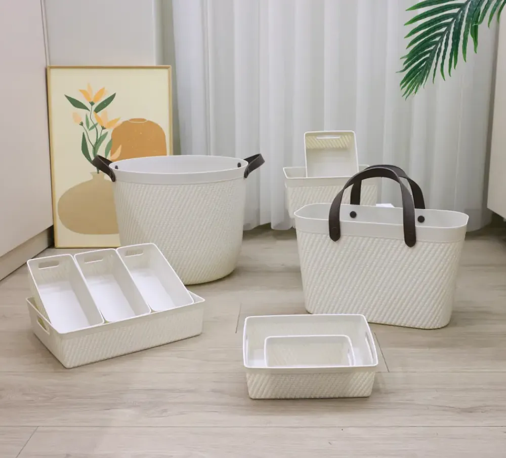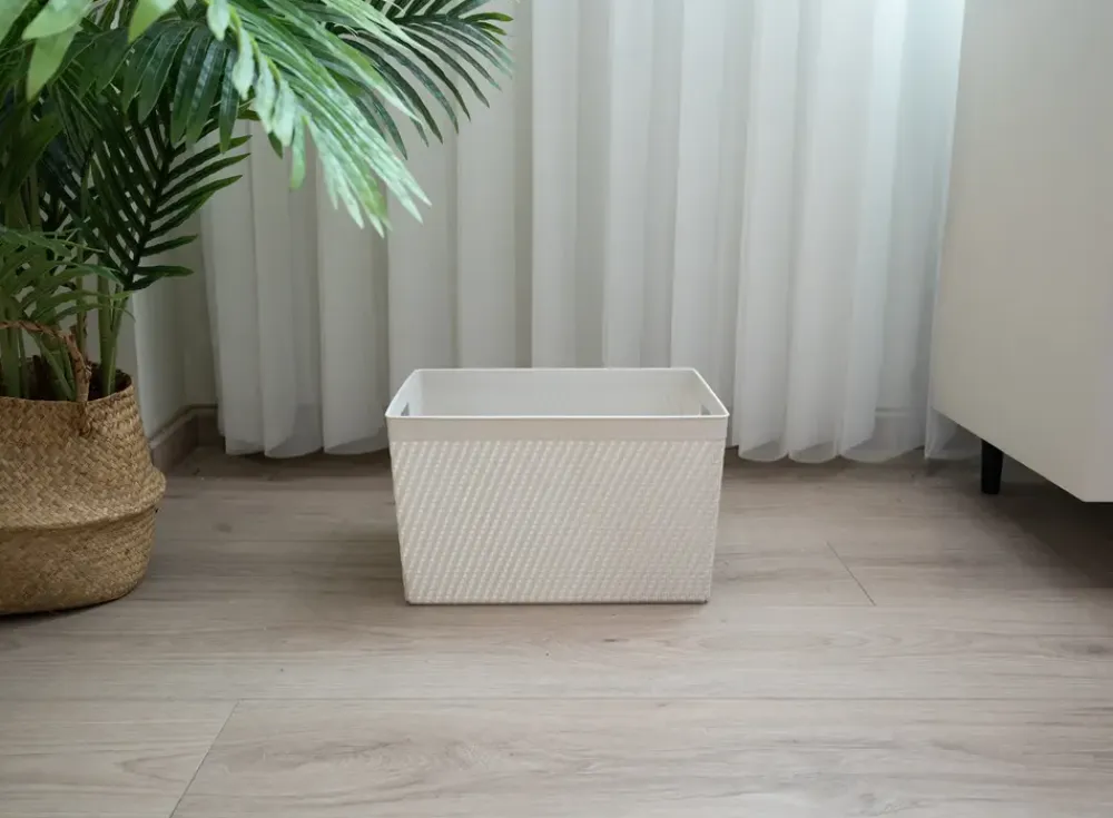 Denne flettede plastikkurv byder på mange opbevaringsmuligheder, lige fra kontorartikler til legetøj på børneværelset.Kurven er lavet i et fletdesign, der giver et moderne og hjemligt look, så det passer ind i de fleste boligindretninger og kommer i en lys og frisk farve.Opbevaringskurvens materiale gør, at den er nem at gøre ren.