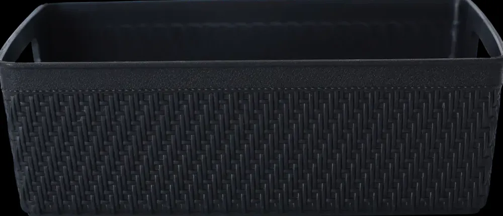 Denne flettede plastikkurv byder på mange opbevaringsmuligheder, lige fra kontorartikler til legetøj på børneværelset.Kurven er lavet i et fletdesign, der giver et moderne og hjemligt look så den passer ind i de fleste boligindretninger og kommer i en klassisk sort farve.Opbevaringskurvens materiale gør, at den er nem at gøre ren.