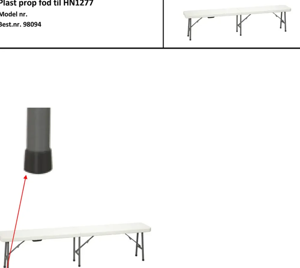 Denne plastprop til fod er en reservedel som passer til:Varenr. 1277 – foldebænk.