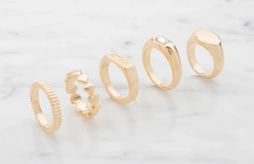 Ring 5 stk. – guld| Smykker & Hårpynt