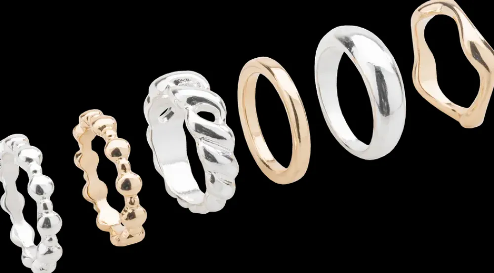 Ring 6 stk. – guld og sølv| Smykker & Hårpynt