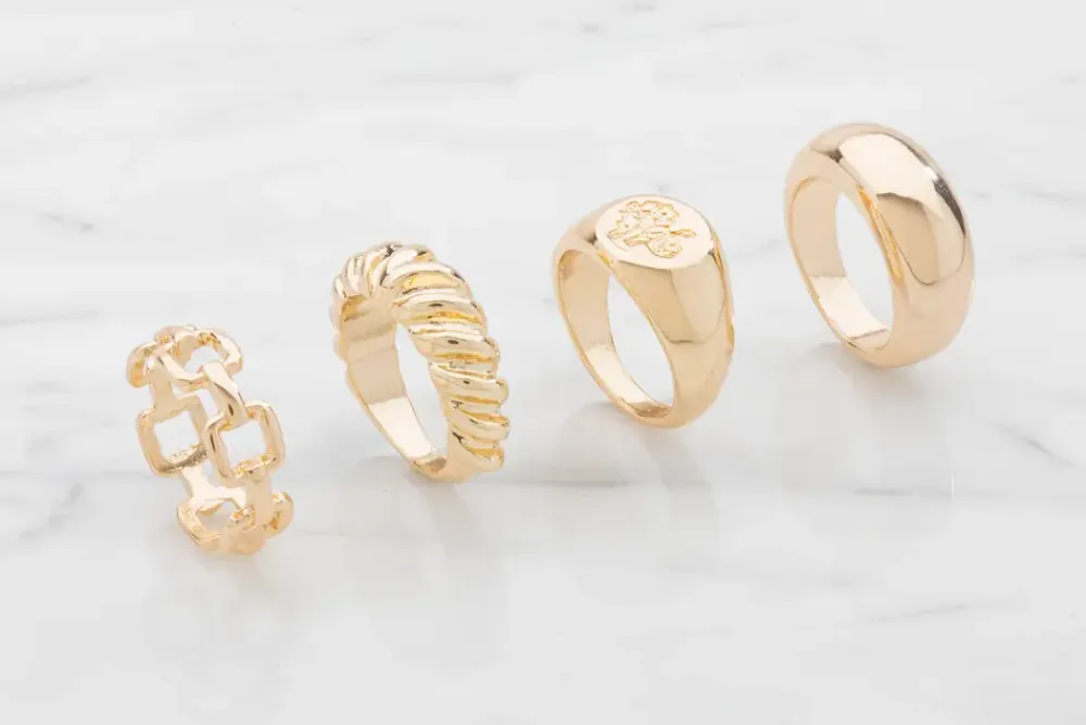 Ring bred 4 stk. – guld| Smykker & Hårpynt