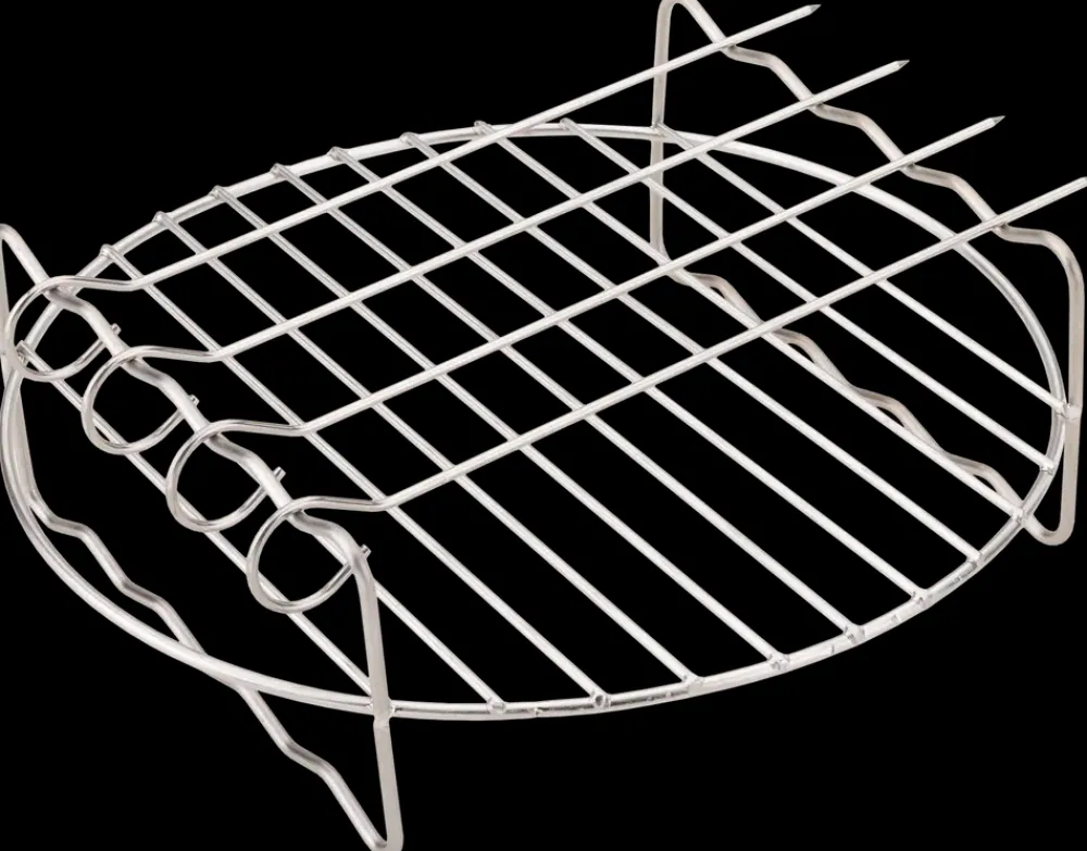 Rist til airfryer i 2 dele i rustfrit stål. Til risten medfølger 4 spyd samt en holder, der kan bruges til både stegt flæsk og toastbrød. Risten kan tåle op til 230°C og er nem at rengøre.Farve: Sølv.Materiale: Rustfrit stål.Tåler op til 230°C.