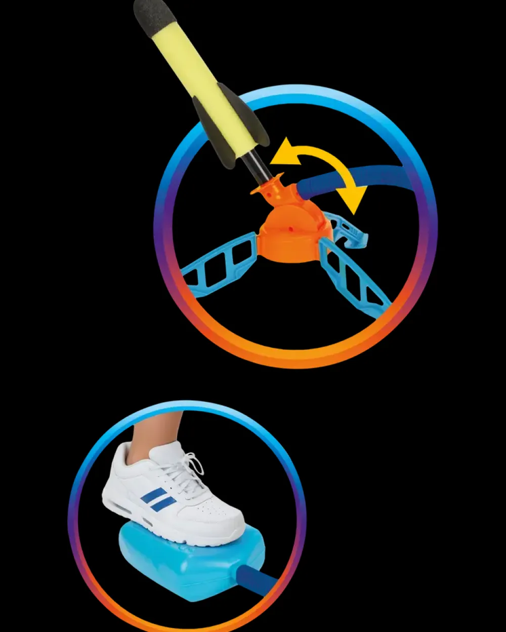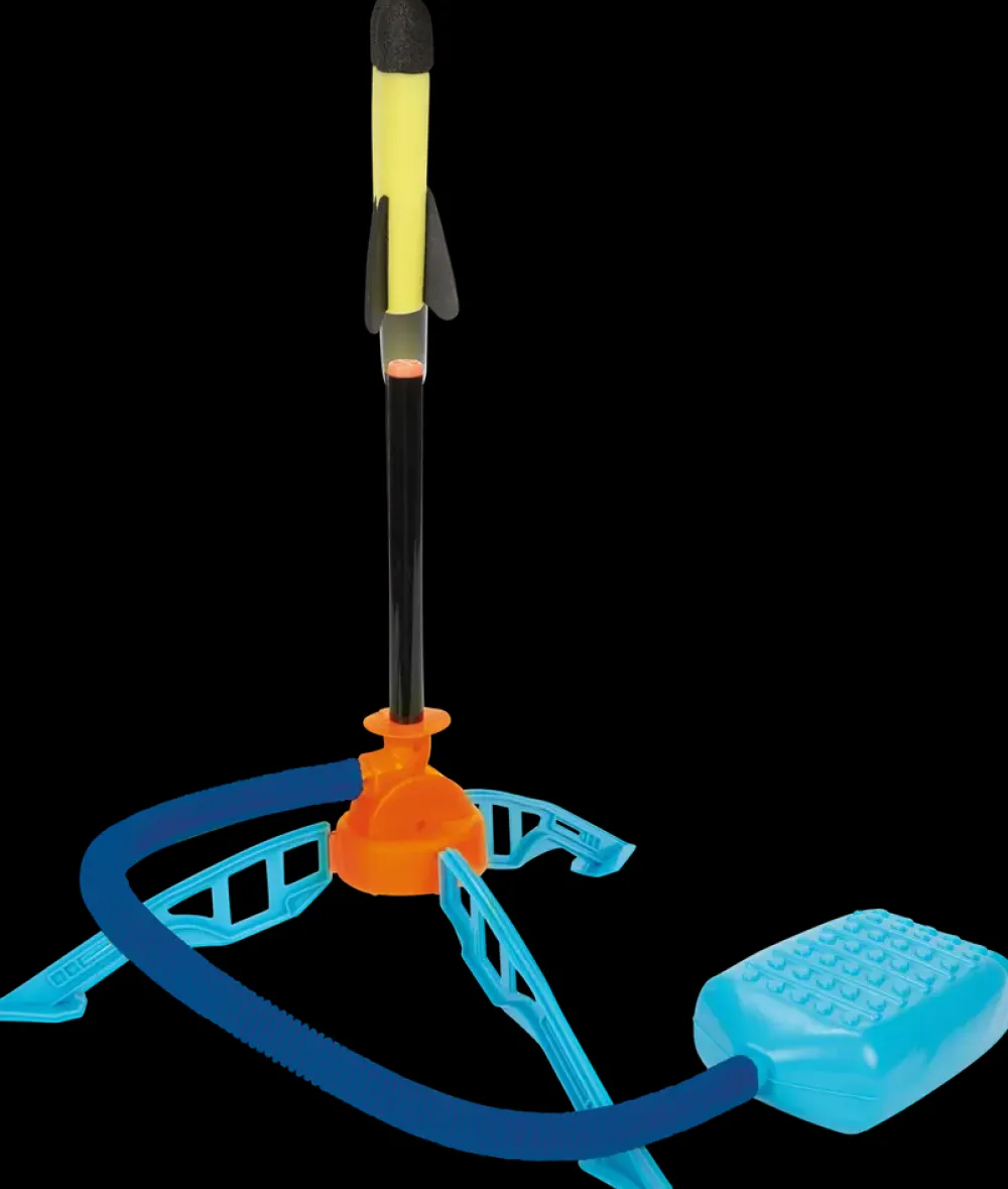 Luftdrevet raket til udendørs leg, der affyres ved hjælp af en fodpumpe. Raketten placeres på affyringsbasen og sendes af sted, når der pumpes luft gennem slangen. Affyringsvinklen kan justeres, så raketten kan skydes i forskellige retninger.Fodpumpen giver mulighed for at variere kraften i affyringen, hvilket påvirker rakettens højde og længde. Raketten er udført i skum og har fastmonterede finner samt afrundet top. Affyringsbasen står stabilt på tre ben og er forbundet til pumpen med en fleksibel slange.Produktet er velegnet til leg i haven eller på åbne områder med god plads.Farver: blå, orange, gulMateriale: EVAC, PP, PE, PVC