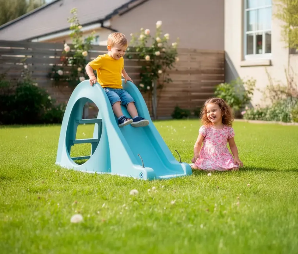 Rutsjebane med integreret hule giver mulighed for aktiv leg i haven eller indendørs. Kombinationen af rutsjebane og krybeområde understøtter bevægelse og leg i én samlet løsning, velegnet til mindre børn.Konstruktionen er udført i plast med afrundede former og en stabil base. Stigen på siden giver adgang til toppen, hvorfra barnet kan glide ned ad banen. Den buede form skaber samtidig et lille rum under rutsjebanen, som kan bruges til gemmeleg eller ophold.Materialet har en lav vægt, hvilket gør den nem at flytte efter behov. Flere enheder kan stables, hvilket letter opbevaring. Produktet leveres klar til brug uden behov for samling.Mål: H. 67 x B. 65 x D. 112 cmRutschehøjde: 67 cmVægt: 3,6 kgMaks. brugervægt: 30 kgMateriale: PolypropylenFarver: Gul, lysblå, rødVariant/farve kan ikke vælges ved køb i webshoppen.