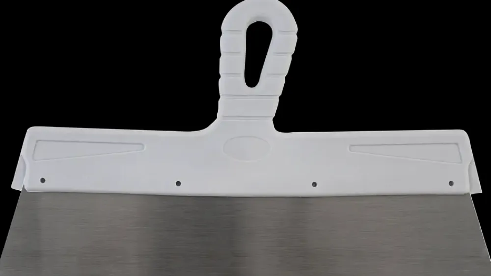 Spartel på 35 cm anvendes til påføring og udjævning af spartelmasse på større overflader. Den brede klinge gør det muligt at fordele materiale jævnt og effektivt, hvilket er velegnet til vægge og lofter ved klargøring før maling eller tapet.Klingen kan også bruges til at skrabe maling, fjerne tapetrester og løs spartelmasse samt til mindre reparationsopgaver som udfyldning af revner og huller. Den brede arbejdsflade bidrager til færre strøg og ensartet resultat ved større flader.Håndtaget er udført i plast med ophængningshul, hvilket gør opbevaring enkel. Klingen er fremstillet i stål med en tykkelse på 0,5 mm, som giver en stabil og fleksibel arbejdsflade.Mål: 350 x 200 x 10,5 mmKlingebredde: 35 cmMateriale: PP-håndtag, stål klingeFarve: grå og metal