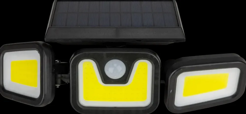 Smart bevægelsesaktiveret solcellelampe. Med 3 bevægelige hoveder der gør det muligt at indstille den ønskede lysspredning. Med COB-LED, der sikrer høj ydeevne.Altid-tændt med sensor-funktion: hvor lyset altid lyser om natten med lav intensitet, men tænder fuldt op ved registrering af bevægelse. Når der ikke registreres bevægelse, vil lyset slukke efter 30 sekunder.Altid-tændt (uden sensor-funktion): hvor lyset altid lyser om natten og ikke reagerer på bevægelse.Lampen har indbygget batteri der lades op via solpanelerne. Et fuldt opladt batteri kan klare mere end 100 bevægelsesaktiveringer af 30 sekunders varighed per nat. Lampen vil ikke tænde i dagslys.Sensor-funktion: 370 lumen.Altid-tændt med sensor-funktion: 50 lumen.Lumen ved bevægelse: 370 lumen.Altid-tændt: 100 lumen.