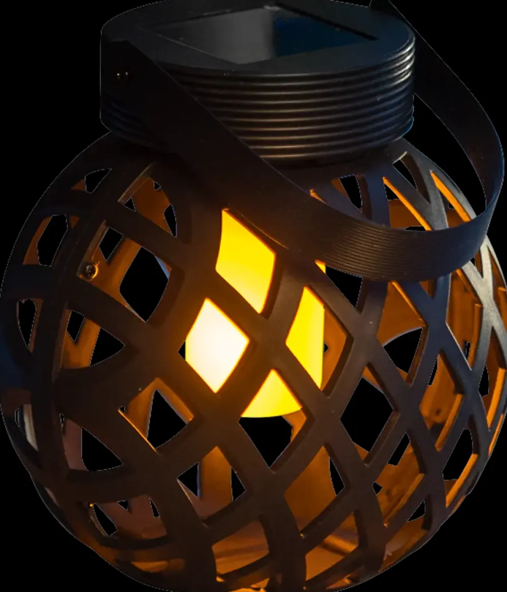 Solcellelanterne med flammende effekt, der både kan stilles på bordet som en lampe, eller hænges op i f.eks. et træ.Giver et varmt, flakkende lys der ligner en ægte flamme. Lanternen har indbygget hank, så den er nemt at flytte rundt på