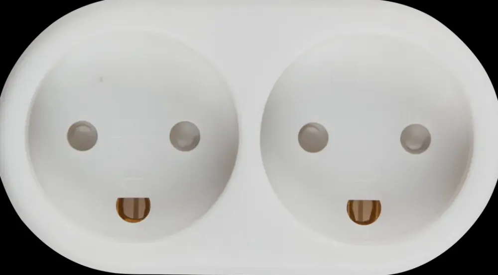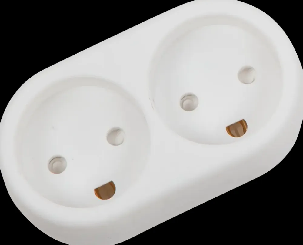 Praktisk stikdåse med 2 runde udtag og jordbeskyttelse.