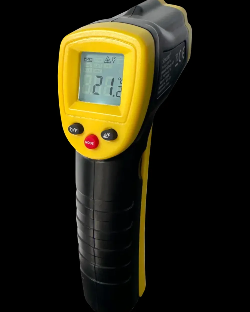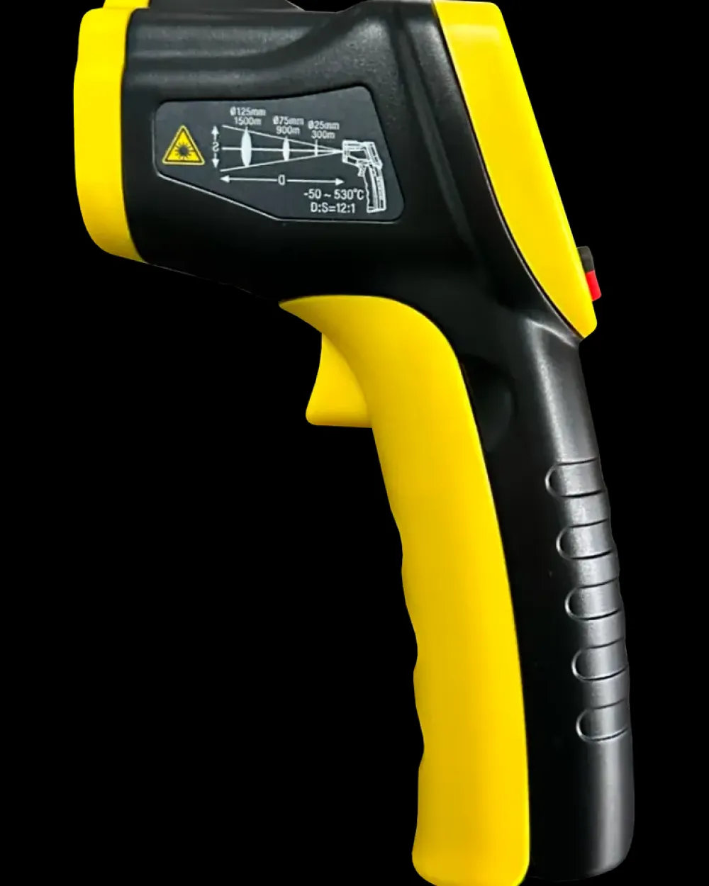 Måler hurtigt og præcist temperaturen på forskellige overflader som f.eks. ydervægge, døre og vinduer for at kontrollere, om der er kuldebroer. Kan også anvendes til madvarer, vandrør, varmerør, kogeplader, pizzaovne m.m.Termometeret anvender infrarød teknologi, som giver et sikkert resultat. Temperaturen vises tydeligt på en LCD-skærm, der gør aflæsning enkel og hurtig.Måleområde: -50 °C til 530 °CStore tal for let aflæsningGentagelsesnøjagtighed: 1 % eller 1 °CAfstand spot ratio: 12:1Emissivitet: 0,95 fast indstillingOpløsning: 0,1 °CLaserpointer med ON/OFF funktionAutosluk for batteribesparelse