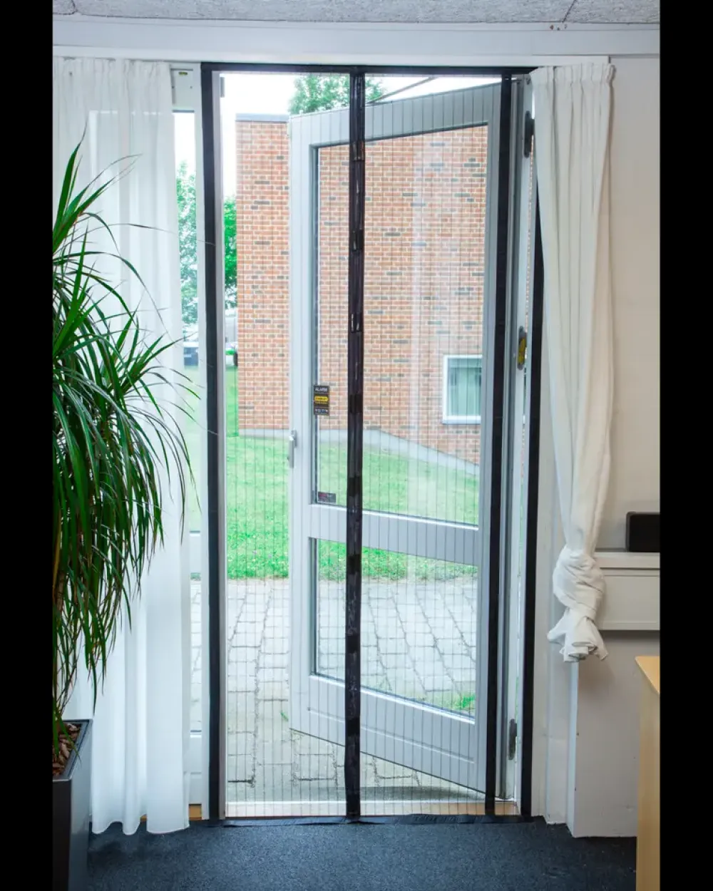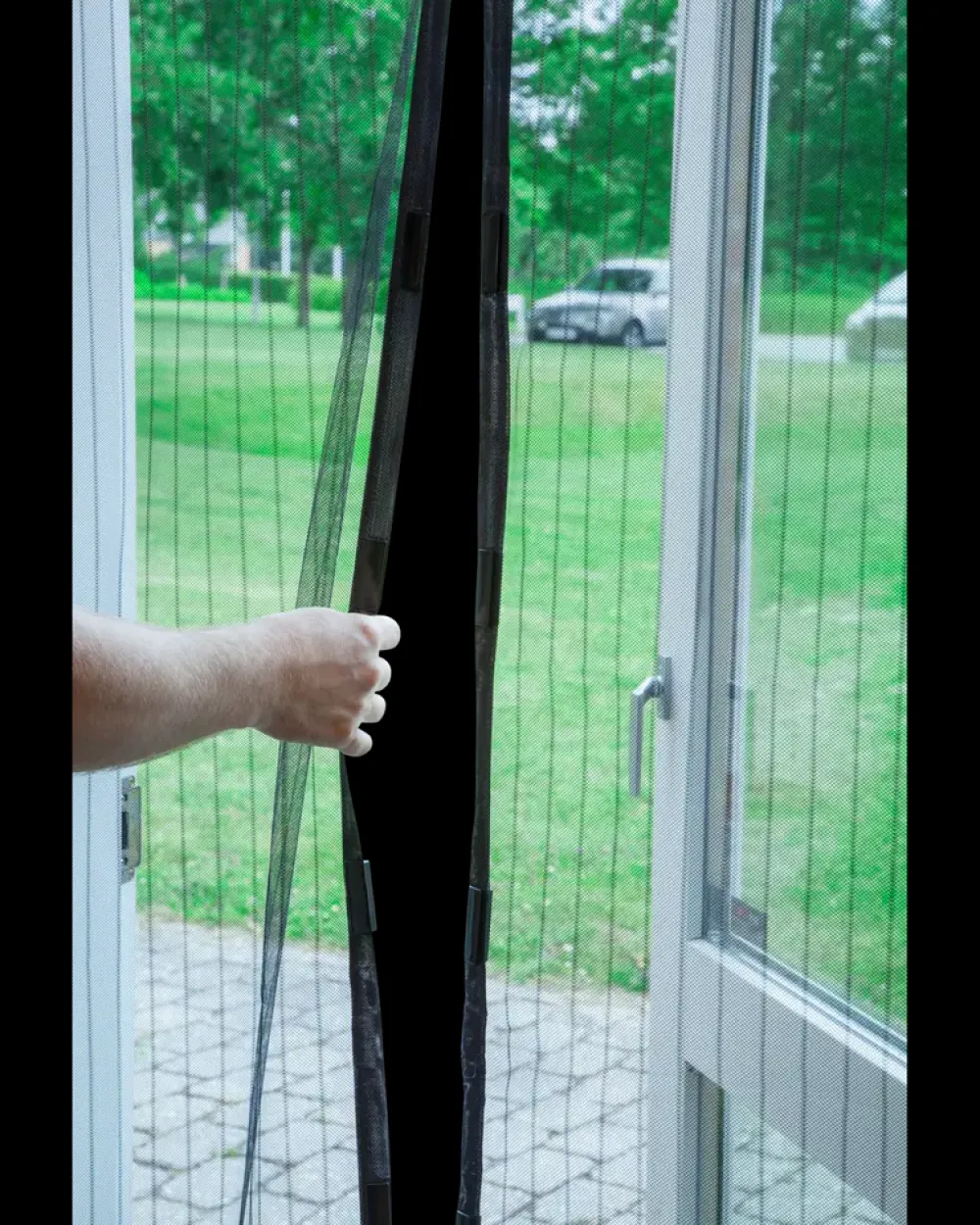 Myggenet til døren med magnetisk lukning.Nettet kan klippes til og monteres nemt uden brug af værktøj.Mål: H. 220/210 x B. 80/90/100 cm.Inkl. 10 sæt magneter og 15 stk. burrebånd.