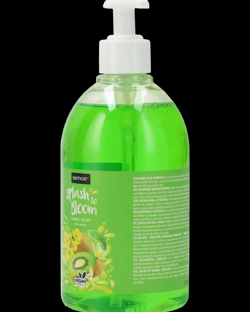 Sence Splash To Bloom er en flydende håndsæbe med duft af kiwi. Sæben er velegnet til daglig håndvask i badeværelse og køkken og efterlader hænderne rene med en frisk duft. Den klare, grønne sæbe leveres i en transparent plastflaske med hvid pumpe, som gør doseringen enkel og kontrolleret.Den flydende konsistens fordeles let på fugtige hænder og skylles af med vand. Pumpedispenseren gør det nemt at tilpasse mængden efter behov, hvilket gør sæben egnet til hyppig brug i hjemmet. Produktet er mærket med vegan formula.Indhold: 500 mlDuft: KiwiType: Flydende håndsæbeFarve: GrønEmballage: Plastflaske med pumpe