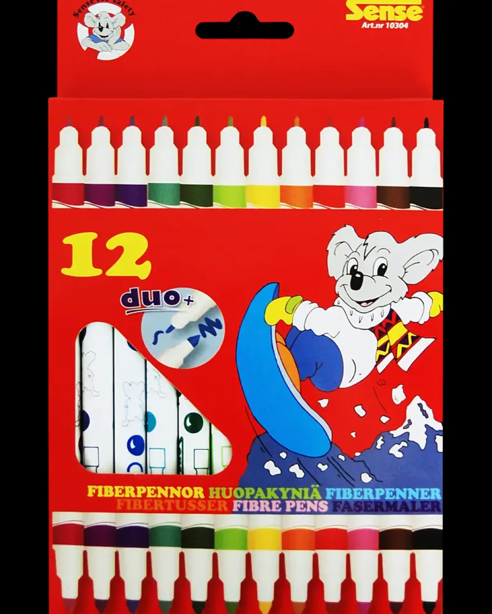Sæt med 12 fibertusser fra Sense. Hver tusch har to spidser – en tyk og en tynd – så de kan bruges til både store flader og fine detaljer.Tusserne har klare farver, der egner sig godt til papir og malebøger.Leveres i en praktisk papæske, som gør det nemt at holde styr på farverne.