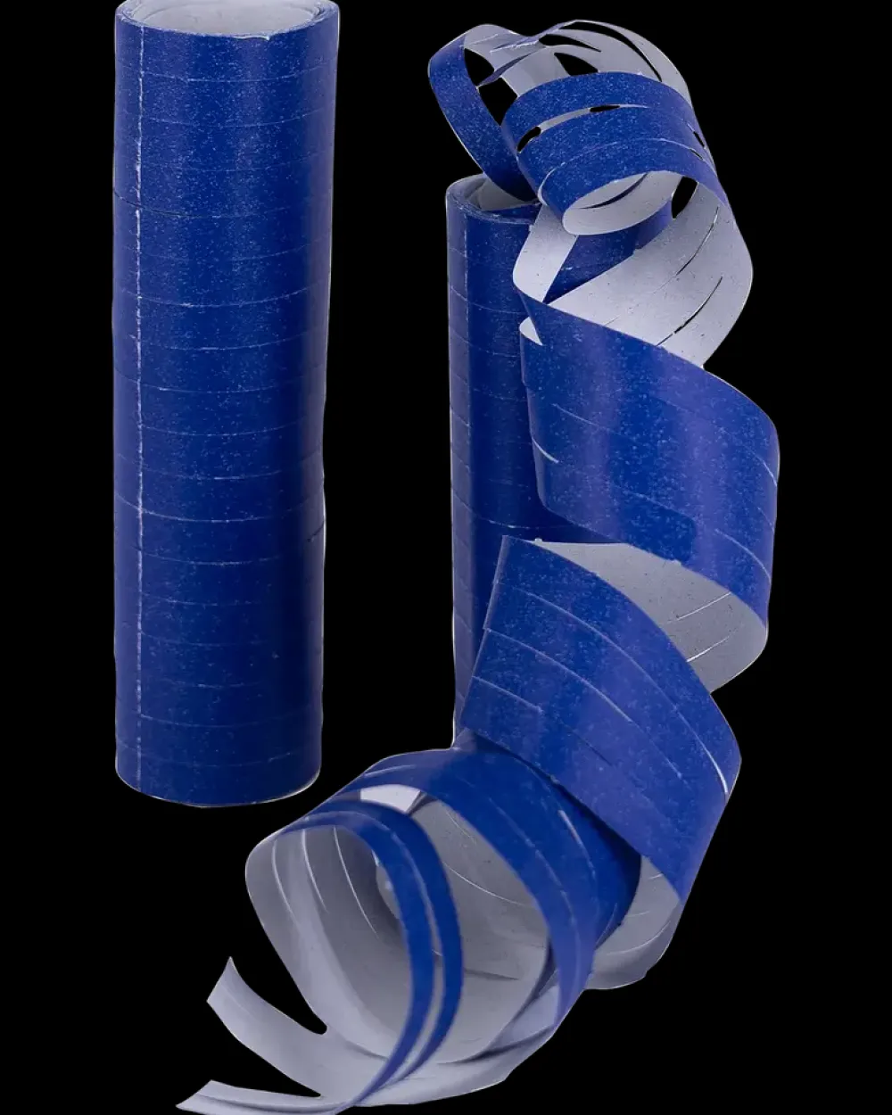 Serpentiner i blå, med 18 ringe pr. rulle.Hver ring er 3 meter lang og 0,70 cm bred.