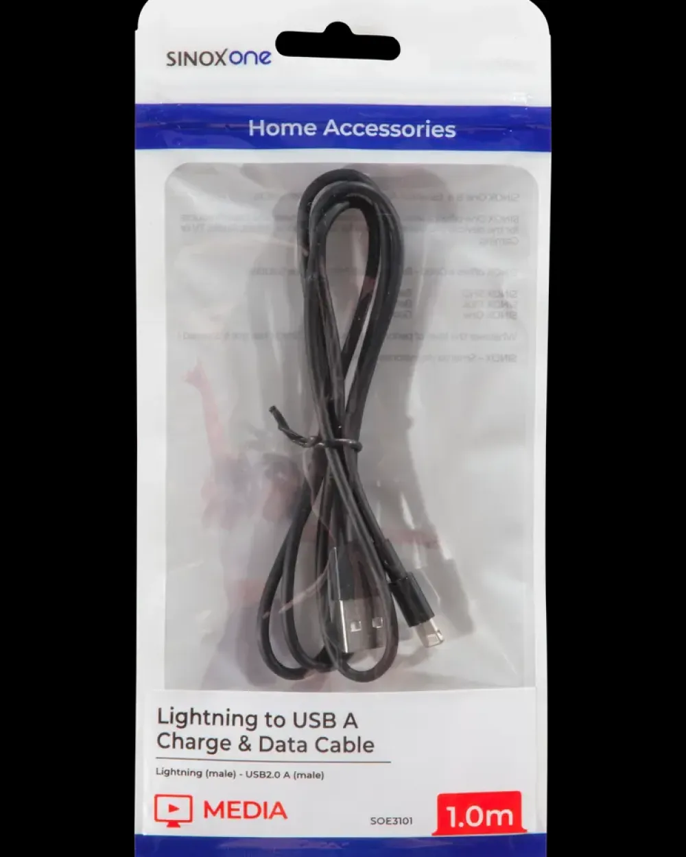 SINOX Lightningkabel 1 meter – sort| Mobiltilbehør