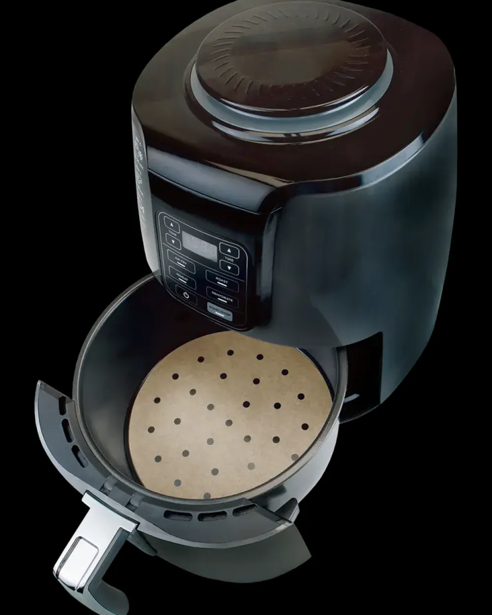 Rundt engangspapir til airfryeren, så du nemt kan holde den ren og tage med ud, uden fastbrændte rester.Det fedtfaste bagepapir med non-stick og små huller, giver en bedre luftgennemstrømning, og er en smidig og enkelt løsning.Papiret egner sig til stegning, grillning, bagning og dampning.Bemærk: Læg ikke bagepapiret i allerede under forvarmningen, når der ikke er mad på det. Papirarkene er meget lette og hvis de ikke tynges af maden, kan de løftes af luftstrømmen og nå varmelegemet, hvilket kan forårsage brand.