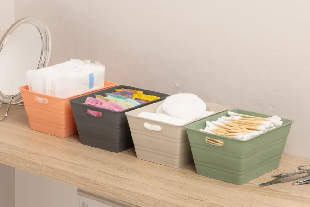 Denne fleksible opbevaringsboks på 0,7 liter fås i tre forskellige farver og er ideel til organisering af diverse genstande. Med målene L. 13 x B. 9,8 x D. 7 cm passer den perfekt til hylder, skabe eller skuffer.Bemærk, at farven ikke kan vælges ved køb i webshoppen.