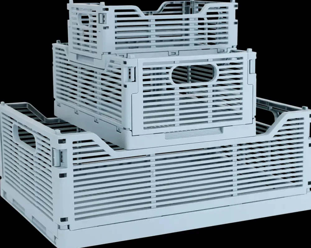 Sammenklappelige opbevaringskasser til organisering af mindre genstande i hjemmet. Kasserne kan anvendes i f.eks. stue, køkken, kontor eller badeværelse og findes i tre størrelser, som dækker forskellige opbevaringsbehov.Kasserne foldes hurtigt ud og kan klappes sammen igen, når de ikke bruges. Den åbne konstruktion giver godt overblik over indholdet og gør det nemt at transportere eller flytte kassen efter behov. Flere kasser kan stables oven på hinanden for pladsbesparende opbevaring.Fremstillet i plast og findes i farverne blå, grå og rosa. Både størrelse og farve vælges ved køb. Følgende størrelser er tilgængelige:Lille: B 15 x L 22 x H 17,5 cm (sælges som 2-pak)Mellem: B 20,5 x L 30,5 x H 12,5 cmStor: B 30 x L 40 x H 15,5 cmDen lille model sælges som 2-pak. De øvrige størrelser sælges enkeltvis.