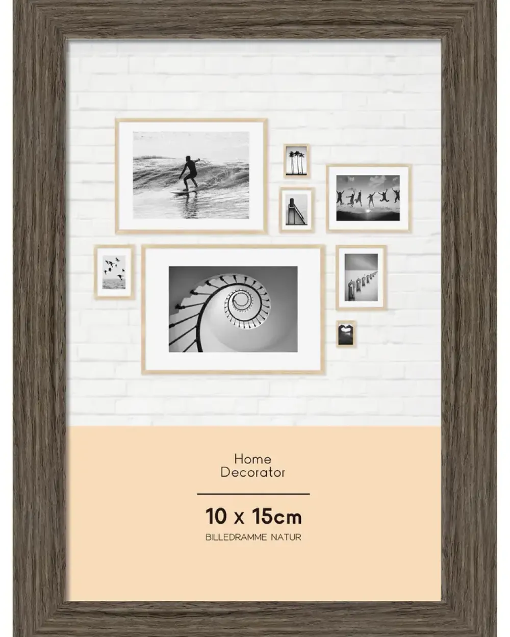 Let og holdbar billedramme i polystyren, designet til ophæng eller placering på en flad overflade. Måler 10 x 15 cm og har en valnøddefarvet finish, der giver et klassisk udtryk.Materialet er ridse- og revnebestandigt, hvilket sikrer lang holdbarhed. Den lette konstruktion gør rammen nem at håndtere og ophænge.Rengøres let med en fugtig klud.