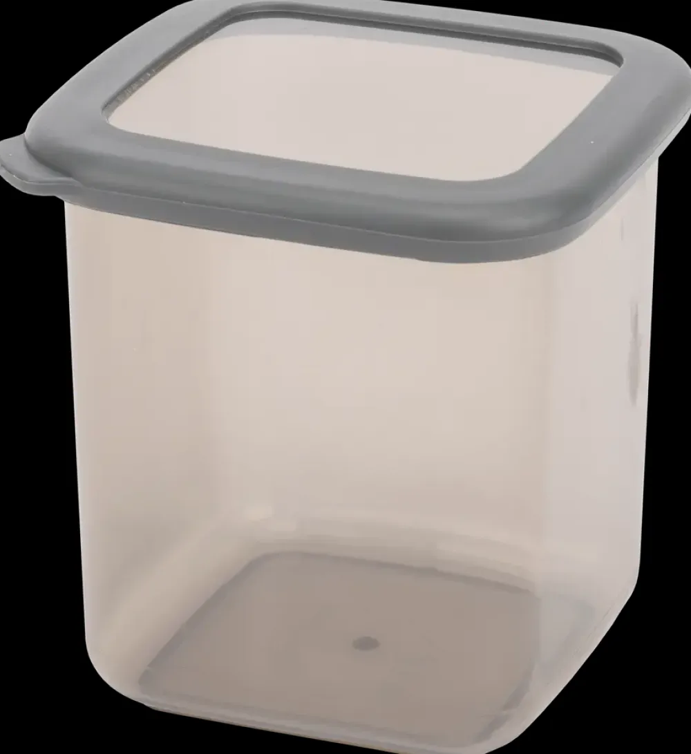 Velegnet til opbevaring af tørvarer, snacks og madrester. Den kvadratiske form gør boksen nem at stable og pladsbesparende i skabe og skuffer. Fremstillet i gennemsigtig plast, så indholdet er let at se. Det tætsluttende låg hjælper med at holde maden frisk.Boksen er BPA-fri, godkendt til fødevarekontakt og tåler opvaskemaskine.
