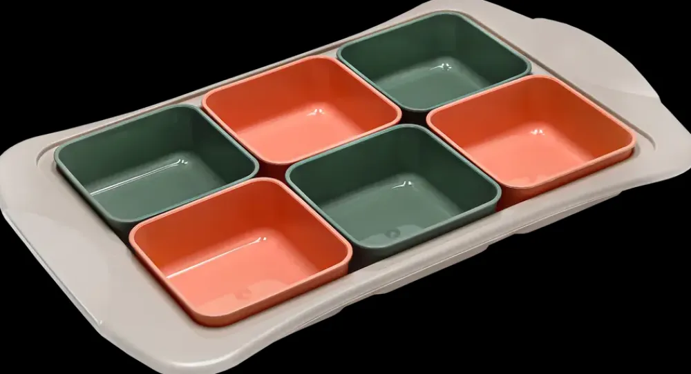 Sæt med fad og skåle, ideelt til morgenmadsbuffeten derhjemme. Det enkle design uden riller og skarpe hjørner gør rengøringen nem.Sættet indeholder:1 Bakke.6 Skåle.Det er ikke muligt at vælge farve ved køb i webshoppen.