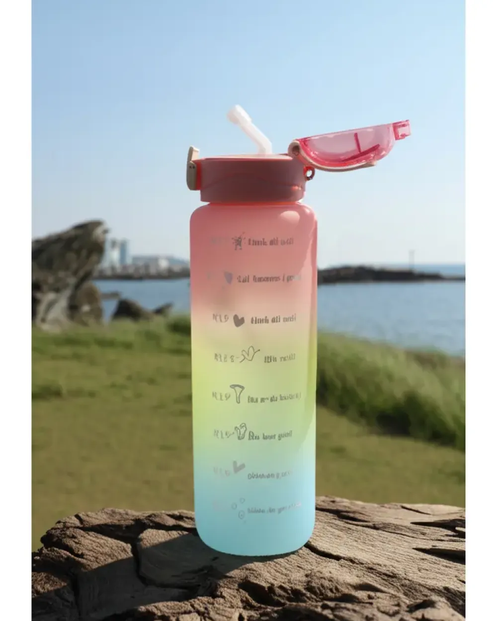 Denne drikkedunk er en praktisk løsning til dig, der ønsker at øge dit daglige væskeindtag. Flasken har tydelige måleangivelser samt motiverende tekster og symboler, der guider dig til at drikke regelmæssigt gennem dagen – fra morgen til aften. Det gør det nemt at følge dit væskeindtag.Drikkedunken rummer 1 liter og er velegnet til kolde drikke. Låget har kliklukning med sikkerhedslås, som beskytter mod spild og holder mundstykket rent. Flasken måler 27 cm i højden og har en diameter på 7,5 cm. Den smalle form gør den nem at have med i tasken eller bilens kopholder.Farven kan ikke vælges ved køb i webshoppen.
