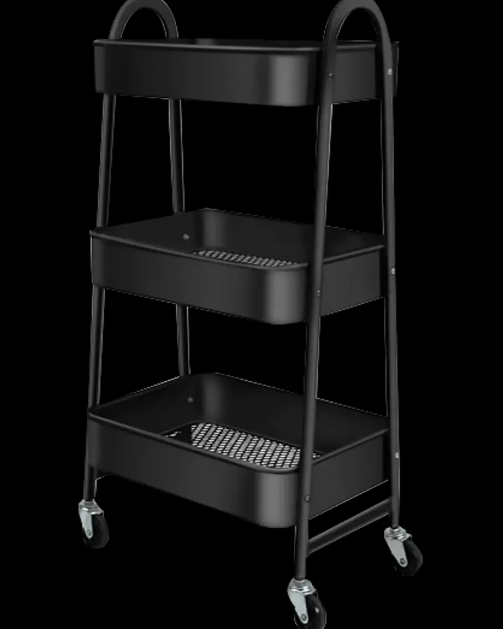 Rullebord med 3 hylder tilbyder praktisk og pladsbesparende opbevaring. Lavet af metal, i en sort farve, Nem at samle og udstyret med hjul, 2 af dem med bremser.Mål: H. 76 x B. 41 x D. 30,5 cm.