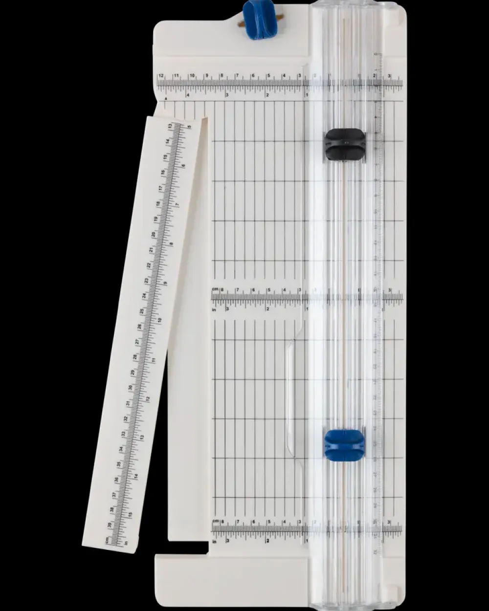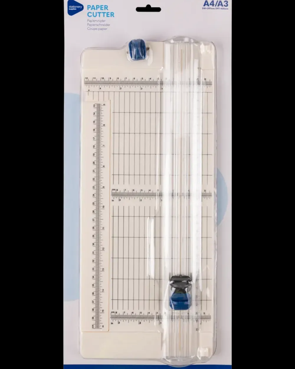 Skæremaskine til hjemme- og hobbybrug, der kan skære op til 5 stykker papir ad gangen.Lav dine egne bordkort, dekorationer, fødselsdagskort eller utallige andre kreative ideer, der kan føres ud i livet med denne skæremaskine.Skæremaskinen passer til A3 og A4 papir og har mange hjælpefunktioner.Med hjælpelinjer og en udsvingslineal med 45-90 graders vinkel kan du nemt skære i præcise vinkler og lave skarpe hjørner. Du kan også bruge centimeter- og tommermålene til at måle og skære papiret i præcise længder.Skæremaskinen kan skære op til 5 stykker papir på samme tid.