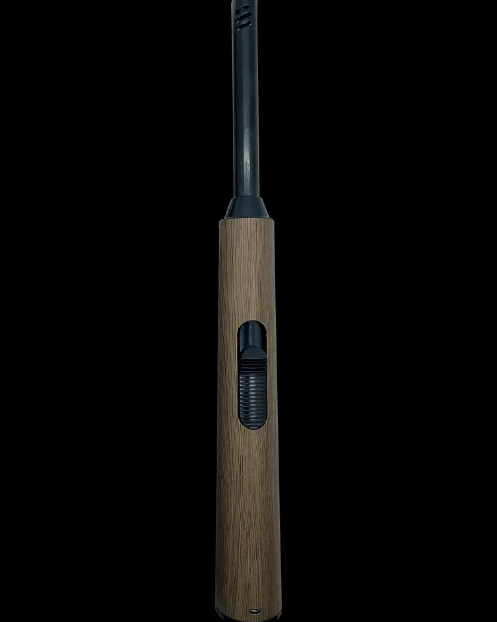 Smart og praktisk BBQ-lighter til optænding af grill, stearinlys og fyrværkeri.Lighteren har en justérbar flamme, så du kan tilpasse styrken efter behov. Den er genopfyldelig og dermed både holdbar og økonomisk. Skaftet har et elegant trælook og fås i tre forskellige designs.Design kan ikke vælges ved køb i webshoppen.